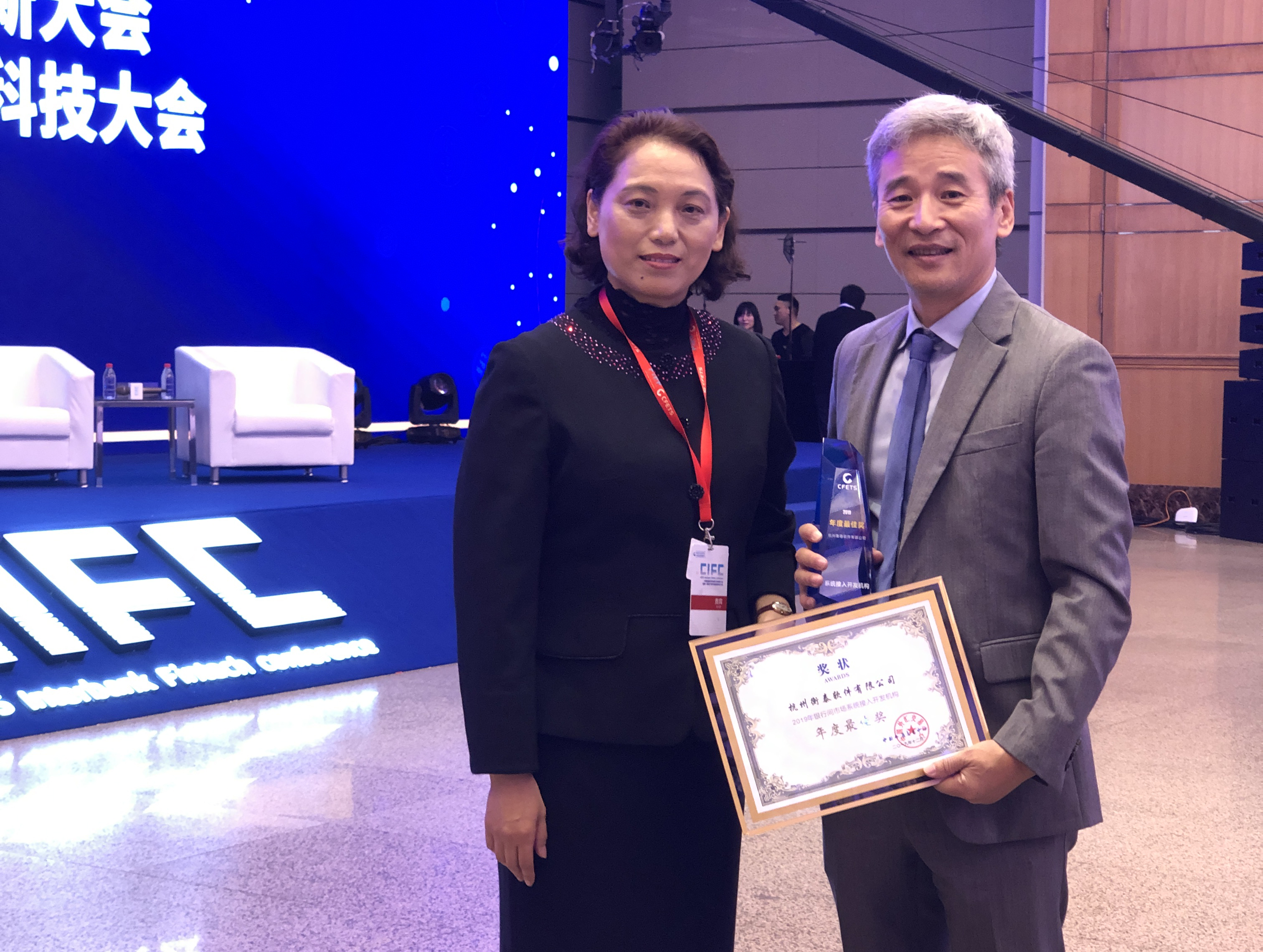 2019年12月17日,中国金融科技场景应用创新大会暨第一届银行间市场金融科技大会在上海举办。本次大会由上海市浦东新区人民政府与中国外汇交易中心暨全国银行间同业拆借中心(简称“外汇交易中心”)共同主办。会上,衡泰软件荣获2019年银行间市场系统接入开发机构年度最佳奖。衡泰软件总经理戴洪波出席会议并代表公司接受颁奖。